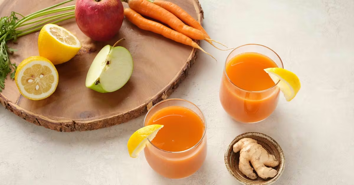 - Suc de morcovi + mere + ghimbir: energizant și antiinflamator