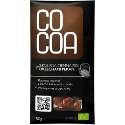 Ciocolata neagra raw 70% nuci pecan eco 50g - COCOA Ciocolata neagra cu Nuci Pecan Bio este o ciocolata premium, fabricata manual, pentru un rasfat sanatos. Toate ingredientele sunt bio si...