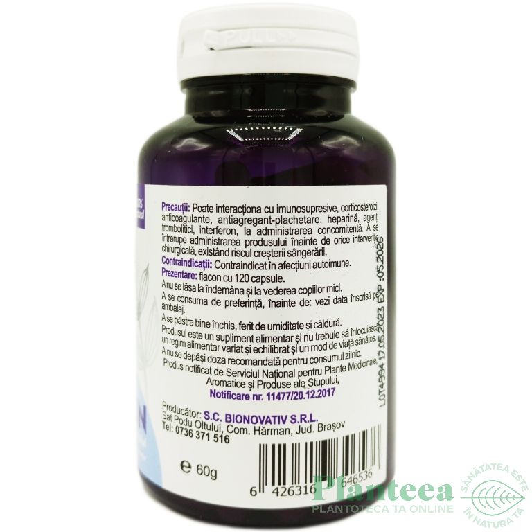 IMPORTANT: Intotdeauna cititi cu atentie descrierea, eticheta si ambalajul produsului inainte de a-l utiliza! Toate informatiile din acest site sunt publicate cu scop informativ si nu substituie sfaturile sau prescriptiile medicului dumneavoastra sau a oricarui personal medical calificat. Nu trebuie sa folositi informatiile prezente in aceste pagini cu rolul de a diagnostica sau trata oricare probleme de sanatate sau boala sau de a inlocui medicamentele si tratamentele prescrise de persoanalul medical autorizat. Aveti obligatia sa cititi cu atentie tot prospectul. Efectele produselor variaza de la persoana la persoana in functie de stilul de viata, metabolism, varsta, stare de sanatate, etc Daca aveti sau credeti ca aveti afectiuni medicale sau suferiti vreo boala, adresati-va de urgenta medicului dumneavoastra.