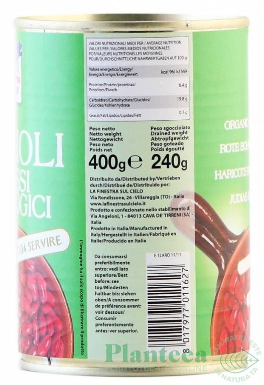 Specificatii Conserva fasole rosie eco 400g - LA FINESTRA SUL CIELO