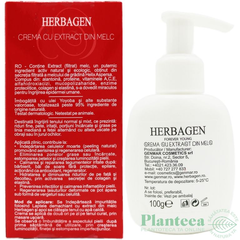 Specificatii Crema fata extract melc 100g - HERBAGEN