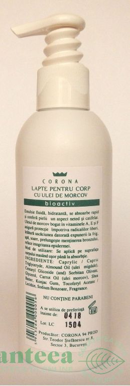 Specificatii Lapte corp ulei morcov 200ml - CORONA