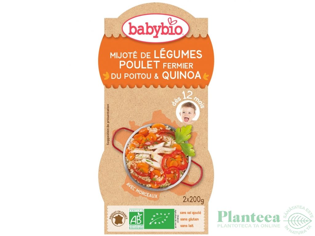 Piure legume pui quinoa bebe +12luni eco 2x200g - BABYBIO