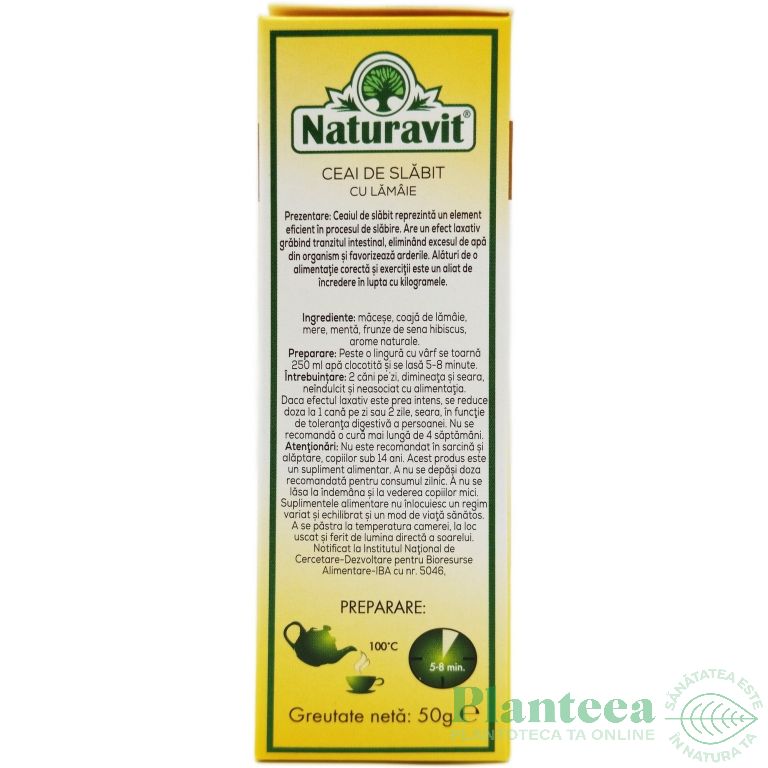 Specificatii Set Ceai slabit cu lamaie 5x50g - NATURAVIT